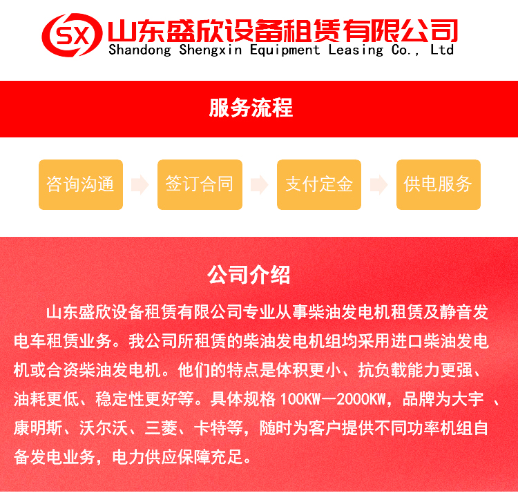山东盛欣发电机租赁专业服务商-提供各种大型柴油发电机租赁出租业务